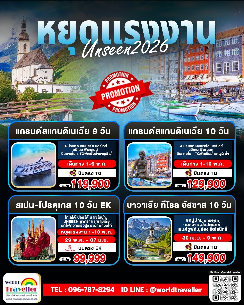 NEW ทัวร์ยุโรป ปีใหม่26-ม.ค.-ก.พ.-มี.ค.-เม.ย.-สงกรานต์-พ.ค.-มิ.ย.-ก.ค.-ส.ค.-ก.ย.-ต.ค.2026 เปิดจองแล้วค่ะ สนใจโทร Tel : 0967878294 ,0925959664 หรือแอดไลน์ ID:@worldtraveller